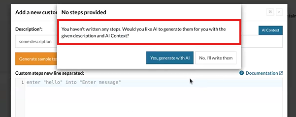 This feature ensures a smoother, more efficient experience when creating new test cases, empowering teams to harness the full potential of AI in automated testing.