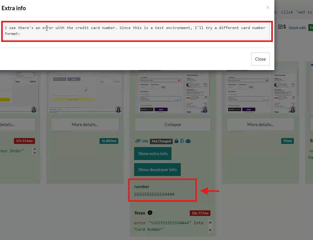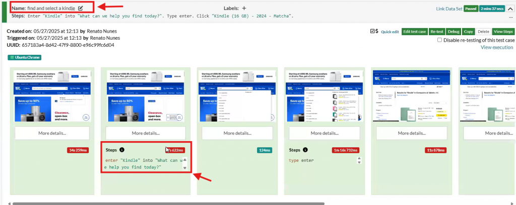 If required, it can also perform more complex requests, like a purchase (NOTE: For this one, it will generate dummy payment info, so it will be required from your side to edit this info once the test case has passed or failed, depending on expected result. Further releases of testRigor will improve this step. For now, you can also add this info and steps to use it in the AI Description or AI context if required):