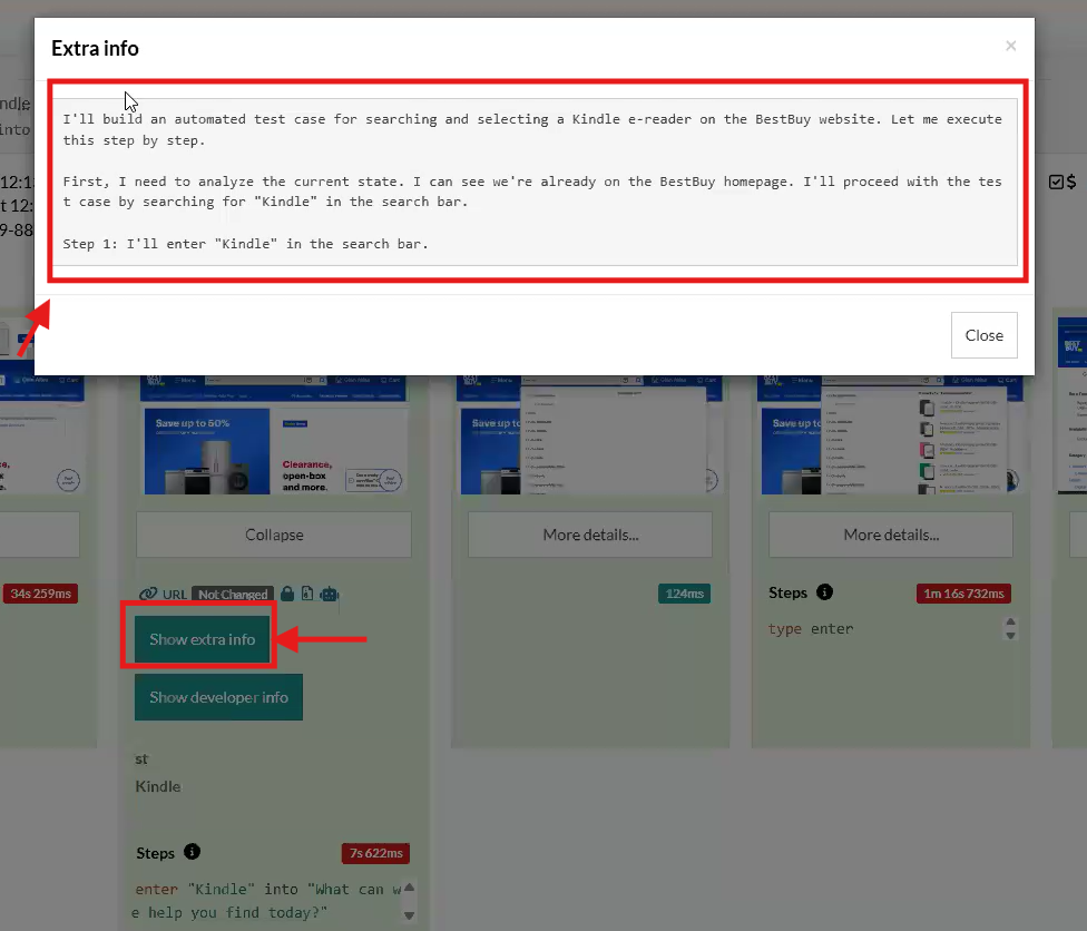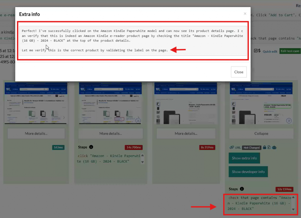 Normally, testRigor AI performs steps based on context, guard rails, goals and different context that we provide in order to complete the test. Now, AI performs more steps in order to reach the expected result, even without AI context (NOTE: We still strongly suggest to keep adding AI context, goals, guard rails and any other comment to enhance prompt result), as it’s going much further expected, and it even asks itself for what to do in the steps generated with the description provided: