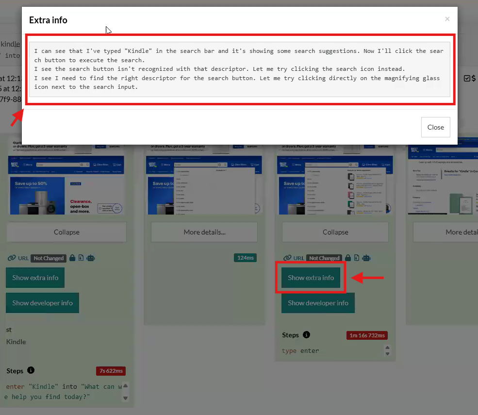 The same can be seen in the next steps where it’s analyzing the website content, providing info about how it’s interacting with the environment and some approaches to the site: