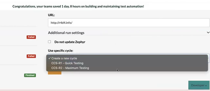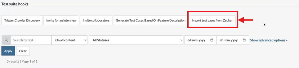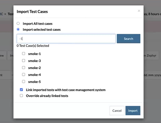 To enable this integration, navigate to Settings → Integrations → Zephyr, select the Zephyr Essential flavor, and complete all required fields. Once configured, a new button with Zephyr Essential options will appear on your interface. When clicking the Import Test Cases from Zephyr button, plan-specific options will be available. Additionally, you can rerun test suites and select test cycles directly from Zephyr Essential, streamlining your testing workflow.