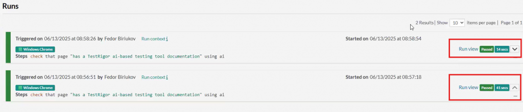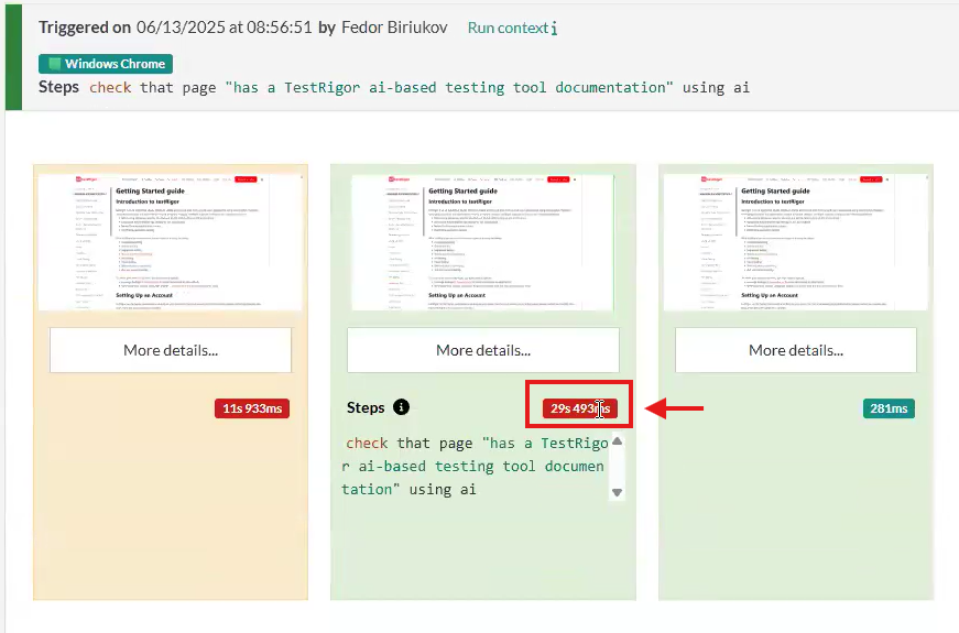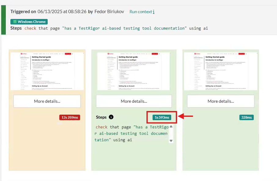 To significantly improve test execution speed and efficiency, caching has been implemented for AI-driven validations and clicks. When re-running a test case, If screenshots are identical, then cached result is reused. When the screenshot matches pixel-to-pixel with the previous run, the same action, return, and validation are automatically repeated—bypassing the need to re-invoke AI processing. If differences are detected, AI evaluation proceeds as normal.