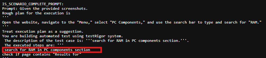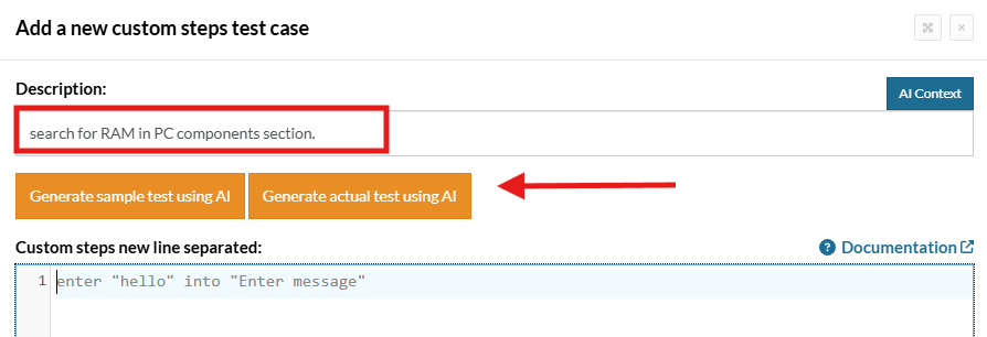 You can check the next example: We have a reusable rule named search for "product" in "section" section, which allow us to search for a product in our website. We’re going to add a parameter named PC for the product, and one named Components for the section. After we add this in the description, our AI will include this in the context, and it will use it for the steps generated.