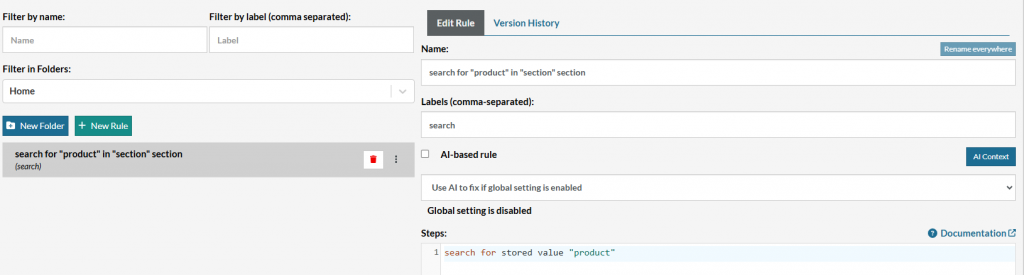 Caption: Reusable rule already created in the test suite.