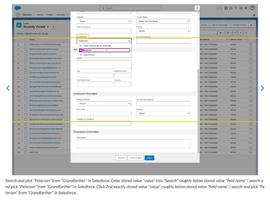 Caption: Search and pick “value” from “field name” in Salesforce command.