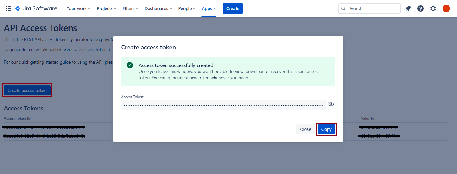 - Navigate to Zephyr Scale API Access Tokens